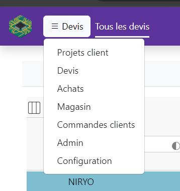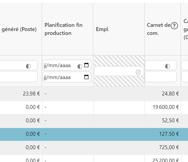 La plupart des pages de l’ERP présentent un tableau de données (commandes, achats etc).