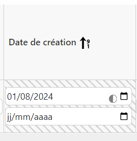 Les cellules “nombre” ou “date” ont deux filtre : minimum et maximum. Il est possible de saisir uniquement l’un des deux.